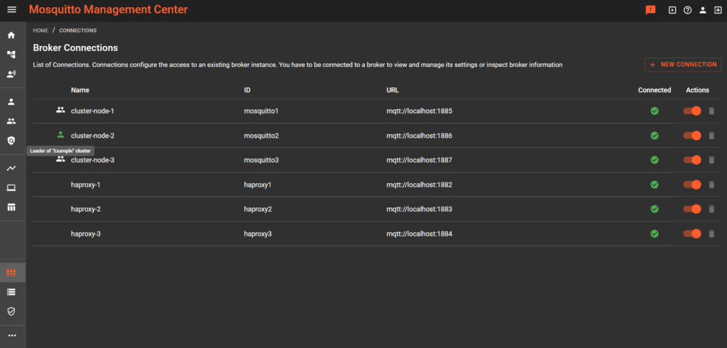 User benefit: Pro Mosquitto users can easily identify cluster configurations through the UI, distinguishing between cluster leaders and followers among broker instances.