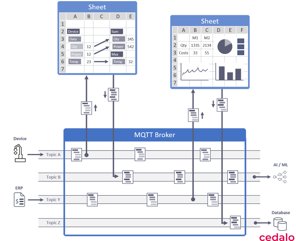 Streamsheets process, monitor, and analyze data streams from various sources in real-time.